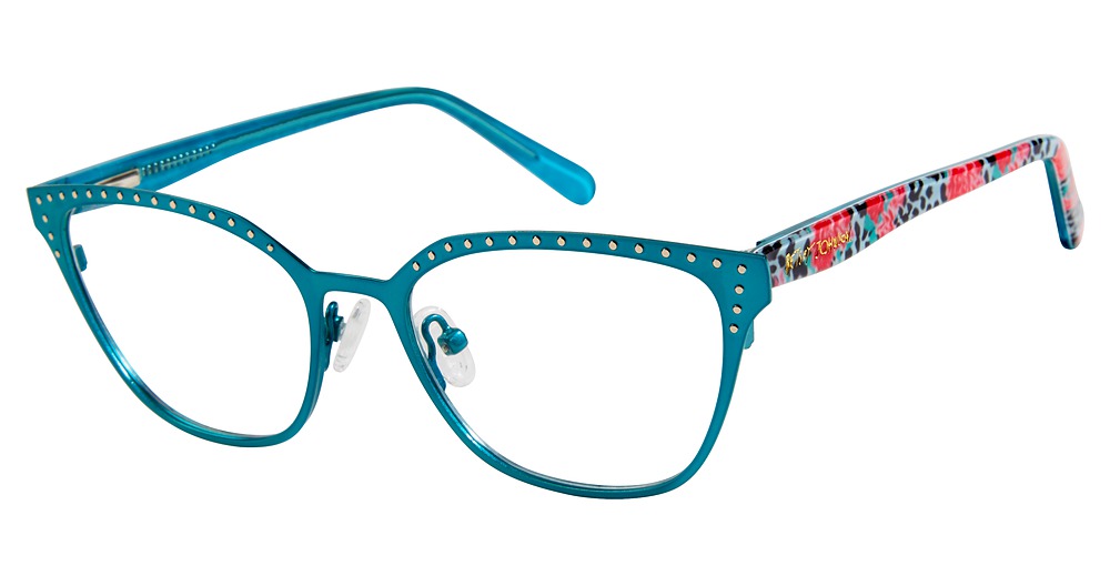 BETSEY JOHNSON eyeglasses BON VOYAGE by ImageWear has a handmade Metal Stainless steel designer frame.Most brand name designer frames come with an authentic case. This frame is beautifully crafted for female. This specially designed eyeglass frame shape is a Modified Round and features a Full Rim construction. The bridge is universal, which should allow a comfortable fit on a person with a shallow bridge on their nose. The temples are skull designed, therefore, they wrap over your ears.
