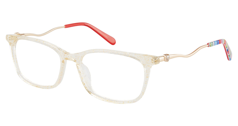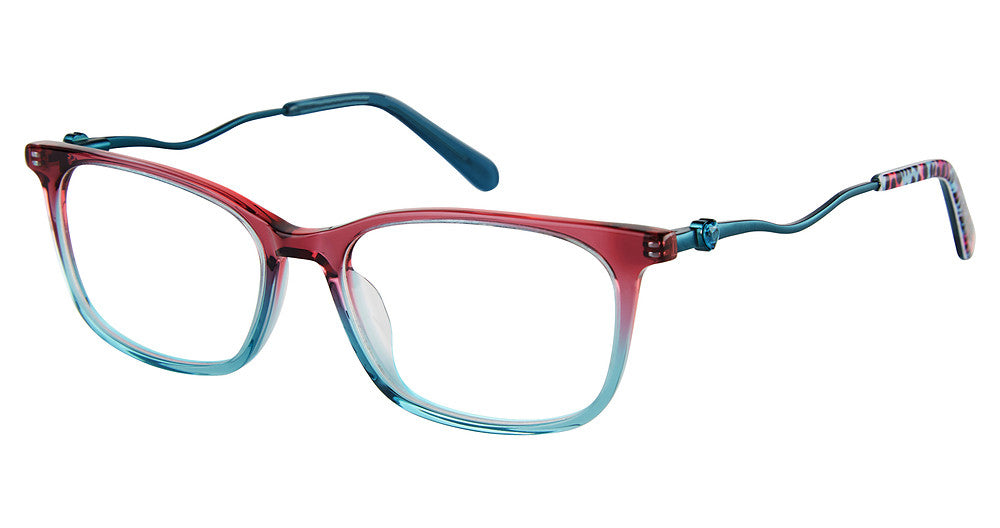 BETSEY JOHNSON eyeglasses PETIT FILLE by ImageWear has a handmade Plastic Zyl Heat Mount designer frame.Most brand name designer frames come with an authentic case. This frame is beautifully crafted for female. This specially designed eyeglass frame shape is a Rectangle and features a Full Rim construction. The bridge is universal, which should allow a comfortable fit on a person with a shallow bridge on their nose. The temples are skull designed, therefore, they wrap over your ears.