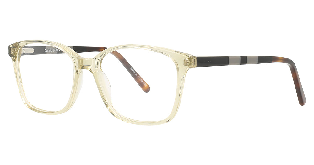 The frame size and color that is available for this model is Cosmic Latte and size(s) of Eye size: 49mm, Bridge size: 16mm, Temple length: 135mm.