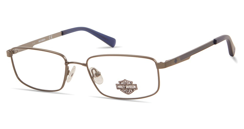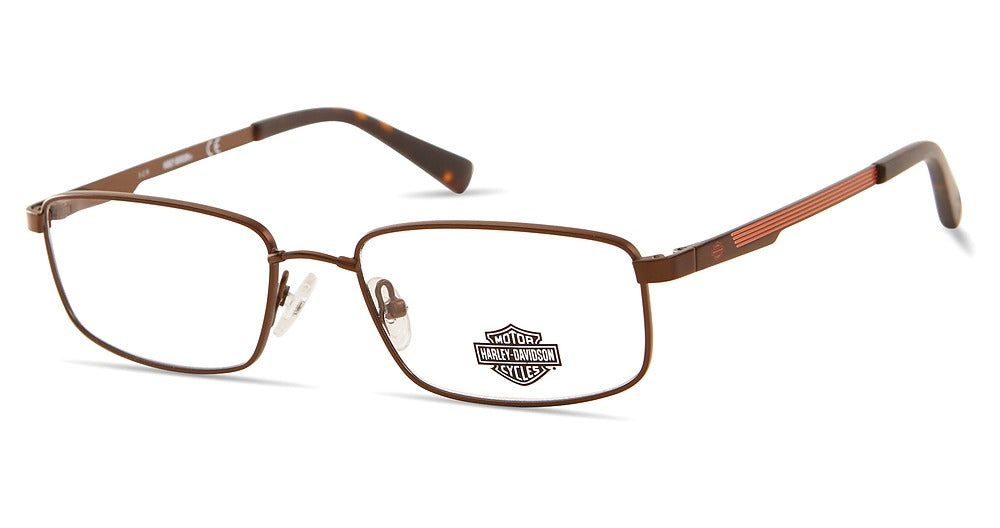 Harley-Davidson eyeglasses HD0141T by Marcolin® has a handmade Metal designer frame.Most brand name designer frames come with an authentic case. This frame is beautifully crafted for unisex. This specially designed eyeglass frame shape is a Rectangle and features a Full Rim construction. The bridge is universal, which should allow a comfortable fit on a person with a shallow bridge on their nose. The temples are skull designed, therefore, they wrap over your ears.