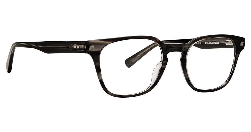Life is Good eyeglasses Raven by McGee Group has a handmade Plastic designer frame.Most brand name designer frames come with an authentic case. This frame is beautifully crafted for female. This specially designed eyeglass frame shape is a Round and features a Full Rim construction. The bridge is universal, which should allow a comfortable fit on a person with a shallow bridge on their nose. The temples are skull designed, therefore, they wrap over your ears.