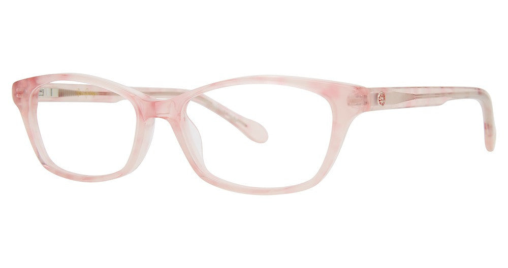Lilly Pulitzer eyeglasses Harding Mini by Kenmark Eyewear has a handmade Plastic designer frame.Most brand name designer frames come with an authentic case. This frame is beautifully crafted for female. This specially designed eyeglass frame shape is a Rectangle and features a Full Rim construction. The bridge is universal, which should allow a comfortable fit on a person with a shallow bridge on their nose. The temples are skull designed, therefore, they wrap over your ears.