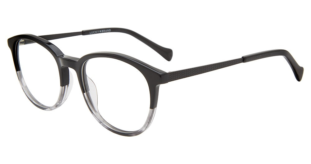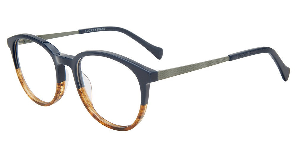 Lucky Brand eyeglasses VLBD822 by De Rigo Rem has a handmade Plastic designer frame.Most brand name designer frames come with an authentic case. This frame is beautifully crafted for male. This specially designed eyeglass frame shape is a Oval and features a Full Rim construction. The bridge is universal, which should allow a comfortable fit on a person with a shallow bridge on their nose. The temples are straight designed, therefore, they wrap over your ears.