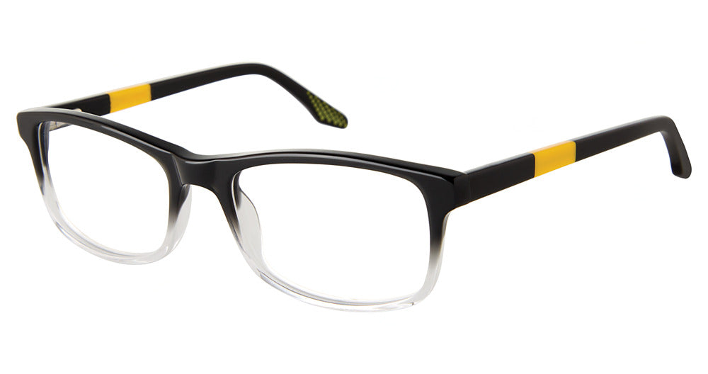 NERF eyeglasses GLADIATOR by ImageWear has a handmade Plastic Zyl Heat Mount designer frame.Most brand name designer frames come with an authentic case. This frame is beautifully crafted for male. This specially designed eyeglass frame shape is a Rectangle and features a Full Rim construction. The bridge is universal, which should allow a comfortable fit on a person with a shallow bridge on their nose. The temples are skull designed, therefore, they wrap over your ears.