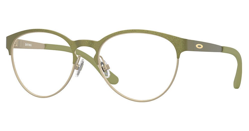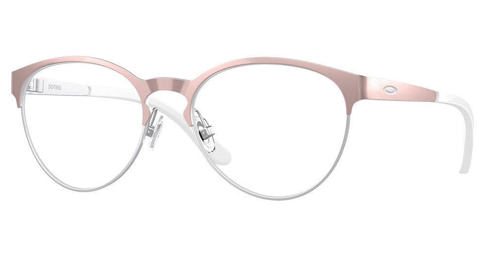 Oakley Youth eyeglasses OY3005 DOTING by Luxottica has a handmade Metal designer frame.Most brand name designer frames come with an authentic case. This frame is beautifully crafted for female. This specially designed eyeglass frame shape is a Modified Oval and features a Full Rim construction. The bridge is universal, which should allow a comfortable fit on a person with a shallow bridge on their nose. The temples are skull designed, therefore, they wrap over your ears.