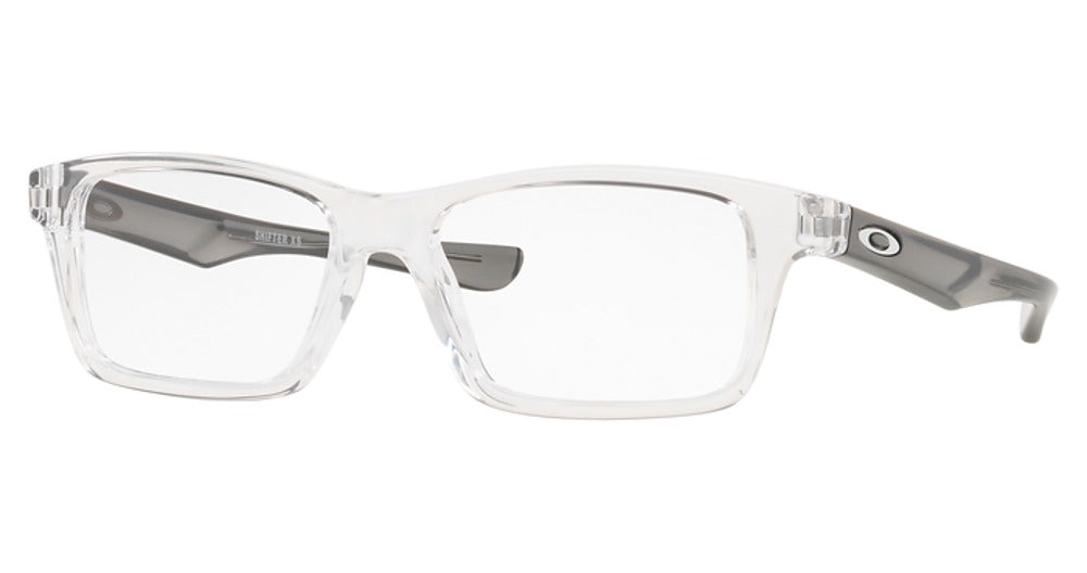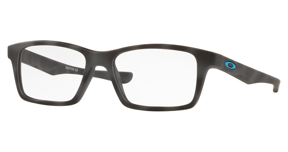 Oakley Youth eyeglasses OY8001 SHIFTER XS by Luxottica has a handmade Nylon designer frame.Most brand name designer frames come with an authentic case. This frame is beautifully crafted for male. This specially designed eyeglass frame shape is a Rectangle and features a Full Rim construction. The bridge is universal, which should allow a comfortable fit on a person with a shallow bridge on their nose. The temples are skull designed, therefore, they wrap over your ears.
