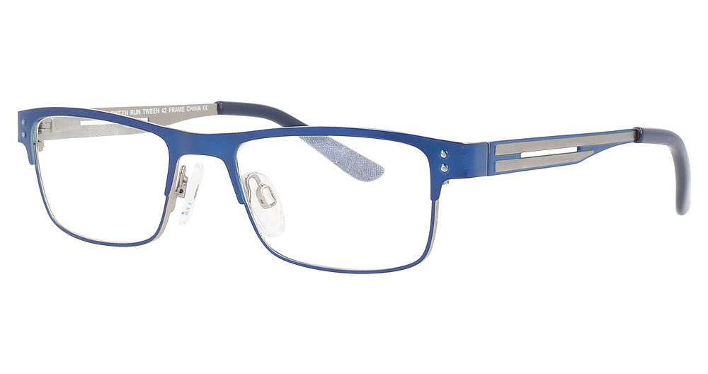 RUNWAY RETRO TWEEN eyeglasses RUN TWEEN42 by Visual Eyes Eyewear has a handmade Metal designer frame.Most brand name designer frames come with an authentic case. This frame is beautifully crafted for female. This specially designed eyeglass frame shape is a Rectangle and features a Full Rim construction. The bridge is universal, which should allow a comfortable fit on a person with a shallow bridge on their nose. The temples are skull designed, therefore, they wrap over your ears.