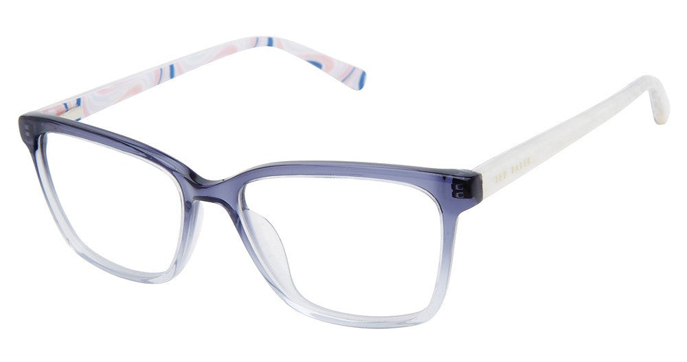 Ted Baker eyeglasses B982 by Tura has a handmade Plastic designer frame.Most brand name designer frames come with an authentic case. This frame is beautifully crafted for female. This specially designed eyeglass frame shape is a Modified Oval and features a Full Rim construction. The bridge is universal, which should allow a comfortable fit on a person with a shallow bridge on their nose. The temples are skull designed, therefore, they wrap over your ears.