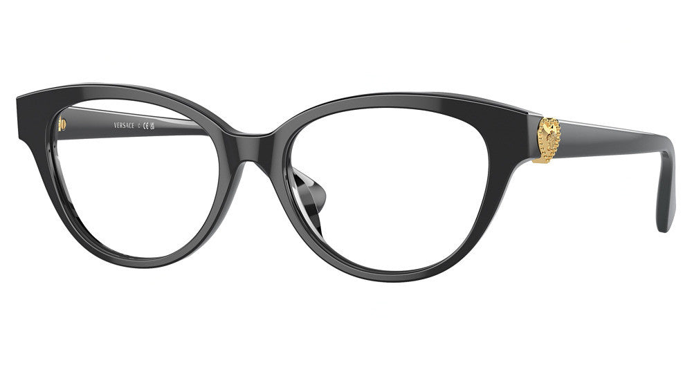 Versace Kids eyeglasses VK3004 by Luxottica has a handmade Plastic designer frame.Most brand name designer frames come with an authentic case. This frame is beautifully crafted for female. This specially designed eyeglass frame shape is a Modified Oval and features a Full Rim construction. The bridge is universal, which should allow a comfortable fit on a person with a shallow bridge on their nose. The temples are skull designed, therefore, they wrap over your ears.