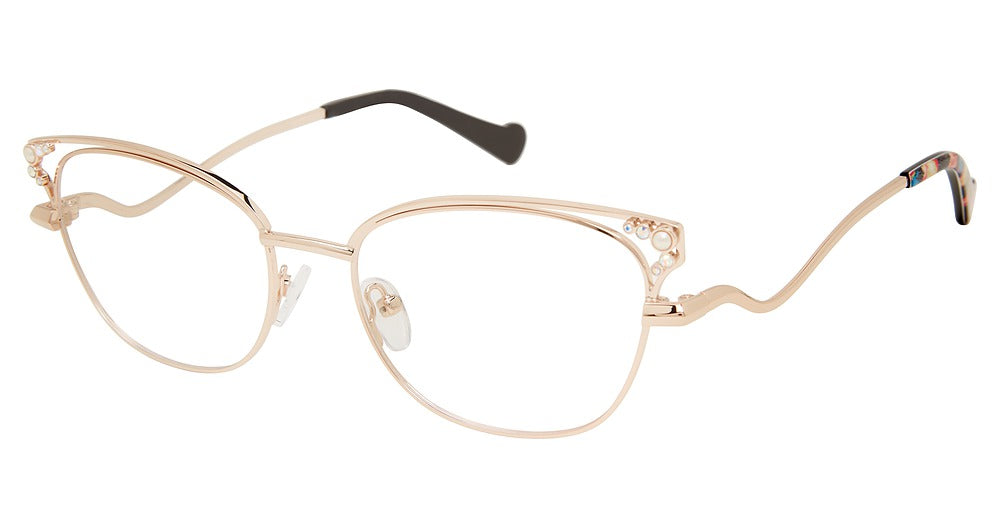 BETSEY JOHNSON eyeglasses ALL NIGHTER by ImageWear has a handmade Metal Stainless steel designer frame.Most brand name designer frames come with an authentic case. This frame is beautifully crafted for female. This specially designed eyeglass frame shape is a Rectangle and features a Full Rim construction. The bridge is universal, which should allow a comfortable fit on a person with a shallow bridge on their nose. The temples are skull designed, therefore, they wrap over your ears.