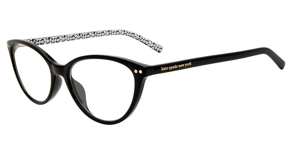 Kate Spade eyeglasses ROANNE/BB by Safilo USA has a handmade Other designer frame.Most brand name designer frames come with an authentic case. This frame is beautifully crafted for female. This specially designed eyeglass frame shape is a Cat Eye and features a Full Rim construction. The bridge is universal, which should allow a comfortable fit on a person with a shallow bridge on their nose. The temples are skull designed, therefore, they wrap over your ears.