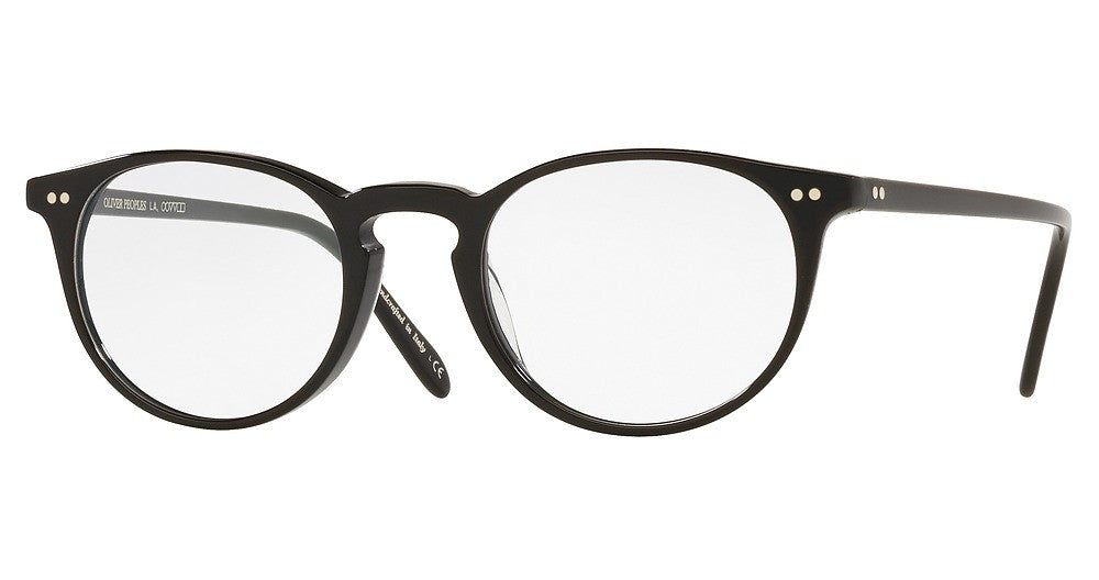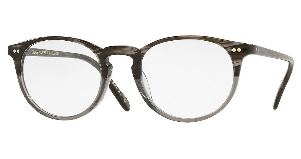 OLIVER PEOPLES eyeglasses OV5004 RILEY-R by Luxottica has a handmade Plastic designer frame.Most brand name designer frames come with an authentic case. This frame is beautifully crafted for unisex. This specially designed eyeglass frame shape is a Modified Round and features a Full Rim construction. The bridge is universal, which should allow a comfortable fit on a person with a shallow bridge on their nose. The temples are straight designed, therefore, they wrap over your ears.