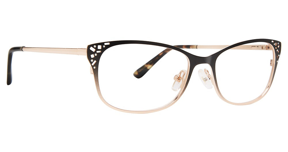 XOXO eyeglasses Valencia by McGee Group has a handmade Metal designer frame.Most brand name designer frames come with an authentic case. This frame is beautifully crafted for female. This specially designed eyeglass frame shape is a Cat Eye and features a Full Rim construction. The bridge is universal, which should allow a comfortable fit on a person with a shallow bridge on their nose. The temples are skull designed, therefore, they wrap over your ears.