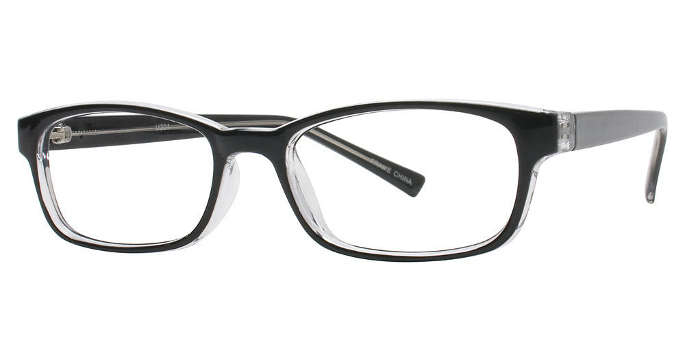 4U eyeglasses U201 by Capri Optics has a handmade Plastic designer frame.Most brand name designer frames come with an authentic case. This frame is beautifully crafted for unisex. This specially designed eyeglass frame shape is a Modified Oval and features a Full Rim construction. The bridge is universal, which should allow a comfortable fit on a person with a shallow bridge on their nose. The temples are skull designed, therefore, they wrap over your ears.