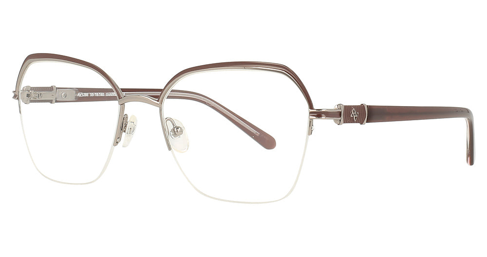 Free shipping on all orders over $99 and save up to 50% off retail shop pricing on Adrienne Vittadini eyeglasses 1286 by Match Eyewear has a handmade Metal designer frame. Most brand name designer frames come with an authentic case. This frame is beautifully crafted for female. This specially designed eyeglass frame shape is a Geometric and features a Semi-Rimless construction. The bridge is universal, which should allow a comfortable fit on a person with a shallow bridge on their nose. The temples are skull designed, therefore, they wrap over your ears. The Adrienne Vittadini eyeglasses 1286 has a one-year warranty, which means if there is a manufacturing defect due to workmanship, they may be exchanged at no charge. Please call or email us so we can help you return the frame to the manufacturer. The frame size and color that is available for this model is Gun/Plum and size(s) of Eye size: 55mm, Bridge size: 18mm, Temple length: 140mm.