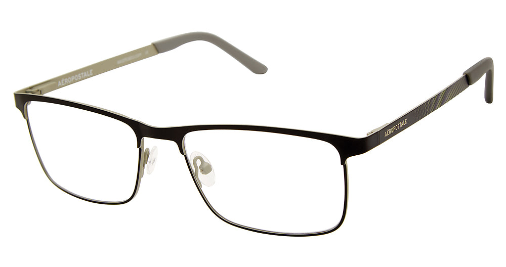 AÉROPOSTALE eyeglasses AERO3000 by A & A Optical has a handmade Metal designer frame.Most brand name designer frames come with an authentic case. This frame is beautifully crafted for male. This specially designed eyeglass frame shape is a Rectangle and features a Full Rim construction. The bridge is universal, which should allow a comfortable fit on a person with a shallow bridge on their nose. The temples are skull designed, therefore, they wrap over your ears.