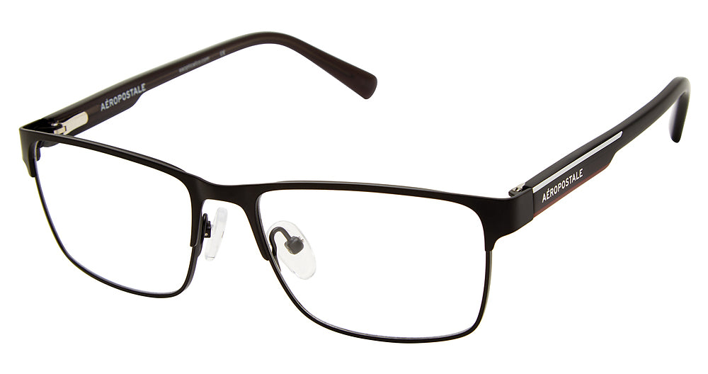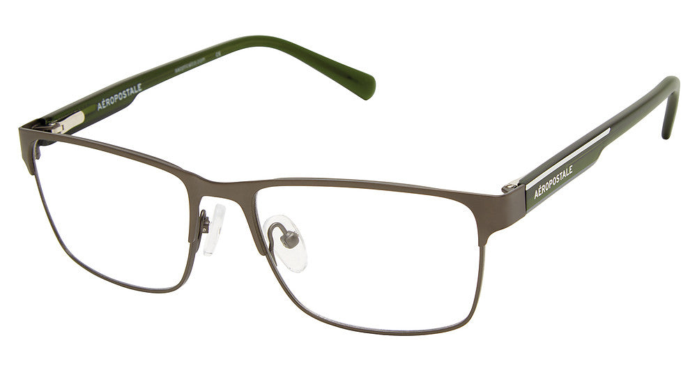 AÉROPOSTALE eyeglasses AERO3004 by A & A Optical has a handmade Metal designer frame.Most brand name designer frames come with an authentic case. This frame is beautifully crafted for male. This specially designed eyeglass frame shape is a Rectangle and features a Full Rim construction. The bridge is universal, which should allow a comfortable fit on a person with a shallow bridge on their nose. The temples are skull designed, therefore, they wrap over your ears.