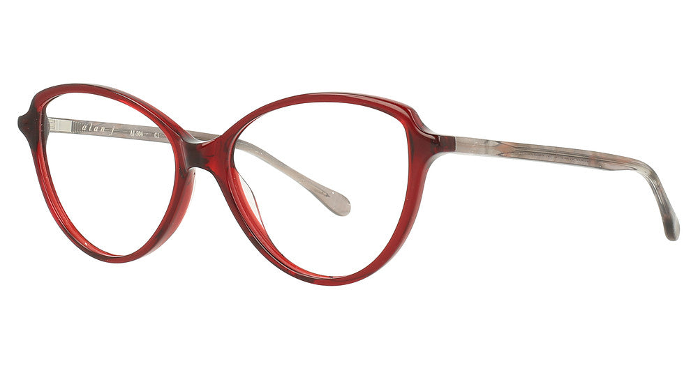 Alan J eyeglasses AJ-504 by Europa Eyewear has a handmade Plastic Acetate designer frame.Most brand name designer frames come with an authentic case. This frame is beautifully crafted for female. This specially designed eyeglass frame shape is a Cat Eye and features a Full Rim construction. The bridge is universal, which should allow a comfortable fit on a person with a shallow bridge on their nose. The temples are skull designed, therefore, they wrap over your ears.