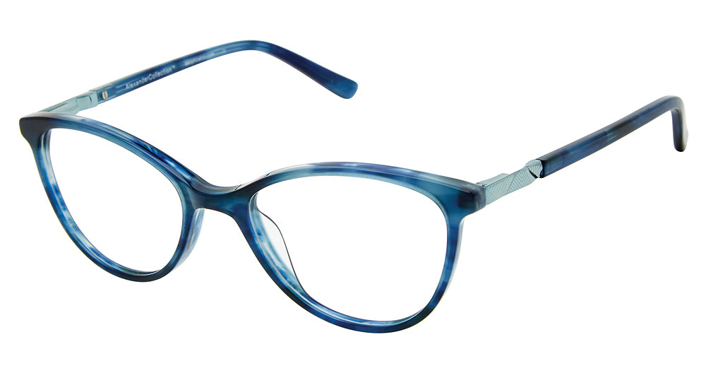 Alexander Collection eyeglasses Malia by A & A Optical has a handmade Plastic designer frame.Most brand name designer frames come with an authentic case. This frame is beautifully crafted for female. This specially designed eyeglass frame shape is a Cat Eye and features a Full Rim construction. The bridge is universal, which should allow a comfortable fit on a person with a shallow bridge on their nose. The temples are skull designed, therefore, they wrap over your ears.
