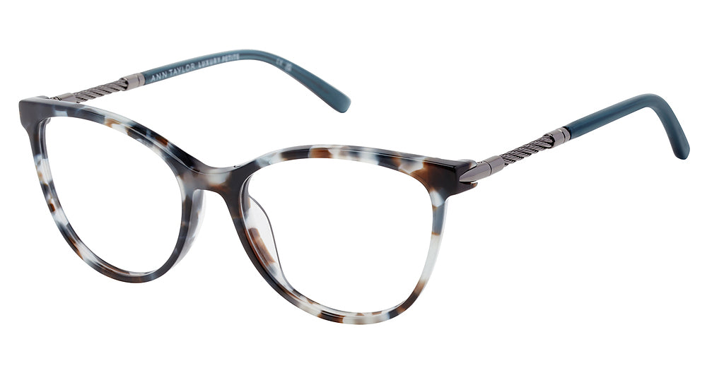 Ann Taylor eyeglasses TYATP031 by L'Amy America has a handmade Plastic Acetate designer frame.Most brand name designer frames come with an authentic case. This frame is beautifully crafted for female. This specially designed eyeglass frame shape is a Modified Round and features a Full Rim construction. The bridge is universal, which should allow a comfortable fit on a person with a shallow bridge on their nose. The temples are skull designed, therefore, they wrap over your ears.