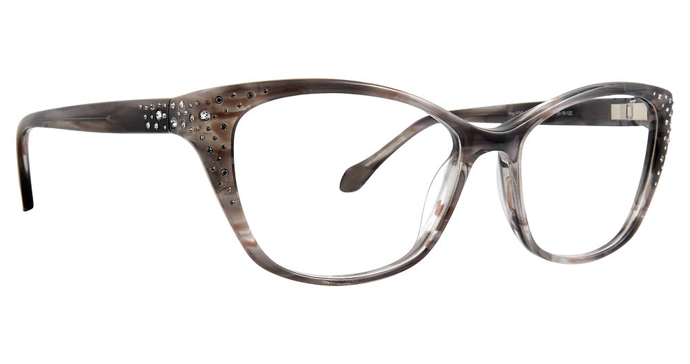 Badgley Mischka eyeglasses Cecile by McGee Group has a handmade Plastic designer frame.Most brand name designer frames come with an authentic case. This frame is beautifully crafted for female. This specially designed eyeglass frame shape is a Cat Eye and features a Full Rim construction. The bridge is universal, which should allow a comfortable fit on a person with a shallow bridge on their nose. The temples are skull designed, therefore, they wrap over your ears.