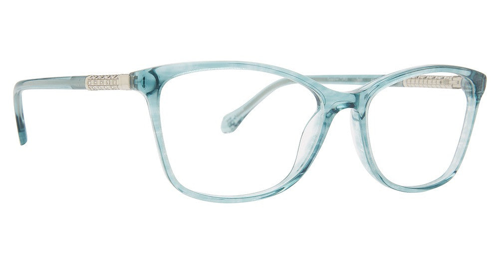 Badgley Mischka eyeglasses Teddi by McGee Group has a handmade Plastic designer frame.Most brand name designer frames come with an authentic case. This frame is beautifully crafted for female. This specially designed eyeglass frame shape is a Rectangle and features a Full Rim construction. The bridge is universal, which should allow a comfortable fit on a person with a shallow bridge on their nose. The temples are skull designed, therefore, they wrap over your ears.