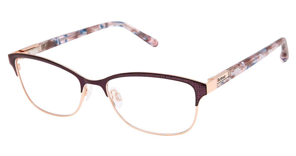 Barbour eyeglasses BAOW511 by Tura has a handmade Metal designer frame.Most brand name designer frames come with an authentic case. This frame is beautifully crafted for female. This specially designed eyeglass frame shape is a Modified Oval and features a Full Rim construction. The bridge is universal, which should allow a comfortable fit on a person with a shallow bridge on their nose. The temples are skull designed, therefore, they wrap over your ears.