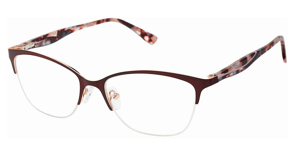 Botaniq eyeglasses BIOW502 by Tura has a handmade Metal designer frame.Most brand name designer frames come with an authentic case. This frame is beautifully crafted for female. This specially designed eyeglass frame shape is a Cat Eye and features a Semi-Rimless construction. The bridge is universal, which should allow a comfortable fit on a person with a shallow bridge on their nose. The temples are skull designed, therefore, they wrap over your ears.