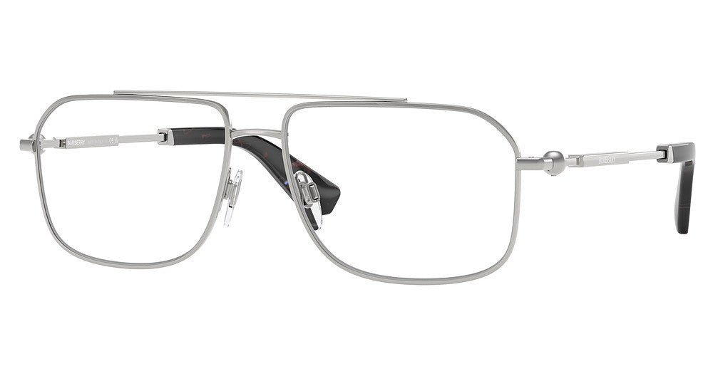 Burberry eyeglasses BE1391 by Luxottica has a handmade Metal designer frame.Most brand name designer frames come with an authentic case. This frame is beautifully crafted for male. This specially designed eyeglass frame shape is a Navigator and features a Full Rim construction. The bridge is universal, which should allow a comfortable fit on a person with a shallow bridge on their nose. The temples are skull designed, therefore, they wrap over your ears.