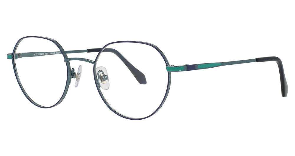 C-Zone eyeglasses R2373 by SD EYES has a handmade Metal Stainless Steel designer frame.Most brand name designer frames come with an authentic case. This frame is beautifully crafted for female. This specially designed eyeglass frame shape is a Modified Round and features a Full Rim construction. The bridge is universal, which should allow a comfortable fit on a person with a shallow bridge on their nose. The temples are skull designed, therefore, they wrap over your ears.