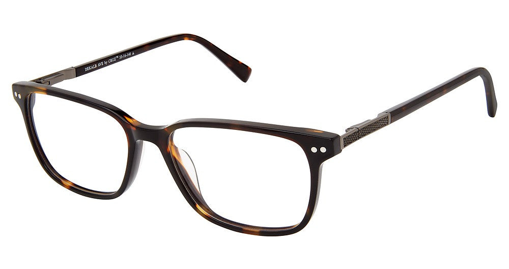 Cruz eyeglasses Dekalb Ave by A & A Optical has a handmade Plastic designer frame.Most brand name designer frames come with an authentic case. This frame is beautifully crafted for male. This specially designed eyeglass frame shape is a Rectangle and features a Full Rim construction. The bridge is universal, which should allow a comfortable fit on a person with a shallow bridge on their nose. The temples are skull designed, therefore, they wrap over your ears.