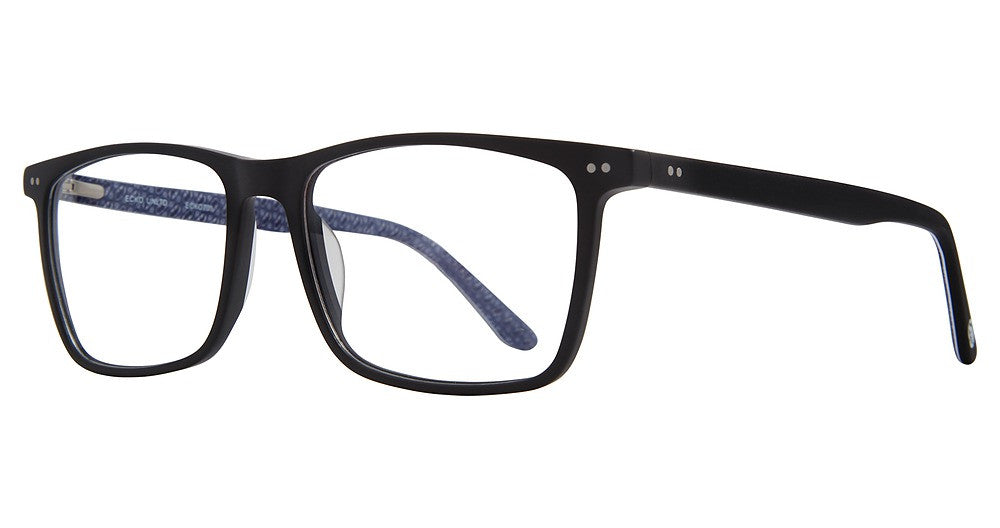 ECKO Unltd eyeglasses ECKO701 by Eye Q Eyewear has a handmade Plastic designer frame.Most brand name designer frames come with an authentic case. This frame is beautifully crafted for male. This specially designed eyeglass frame shape is a Rectangle and features a Full Rim construction. The bridge is universal, which should allow a comfortable fit on a person with a shallow bridge on their nose. The temples are skull designed, therefore, they wrap over your ears.