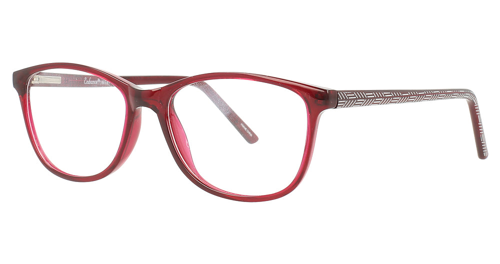 Free shipping on all orders over $99 and save up to 50% off retail shop pricing on Enhance eyeglasses 4147 by New York Eye - Hart has a handmade Plastic designer frame. Most brand name designer frames come with an authentic case. This frame is beautifully crafted for female. This specially designed eyeglass frame shape is a Modified Oval and features a Full Rim construction. The bridge is universal, which should allow a comfortable fit on a person with a shallow bridge on their nose. The temples are skull designed, therefore, they wrap over your ears. The Enhance eyeglasses 4147 has a one-year warranty, which means if there is a manufacturing defect due to workmanship, they may be exchanged at no charge. Please call or email us so we can help you return the frame to the manufacturer. The frame size and color that is available for this model is BURGUNDY and size(s) of Eye size: 54mm, Bridge size: 18mm, Temple length: 145mm.