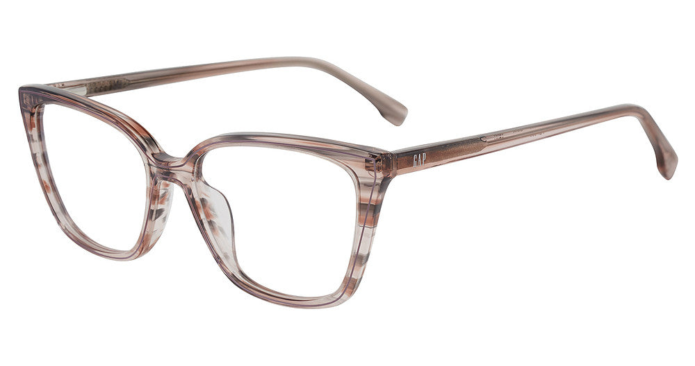 GAP eyeglasses VGP058 by De Rigo Rem has a handmade Plastic designer frame.Most brand name designer frames come with an authentic case. This frame is beautifully crafted for female. This specially designed eyeglass frame shape is a Cat Eye and features a Full Rim construction. The bridge is universal, which should allow a comfortable fit on a person with a shallow bridge on their nose. The temples are straight designed, therefore, they wrap over your ears.