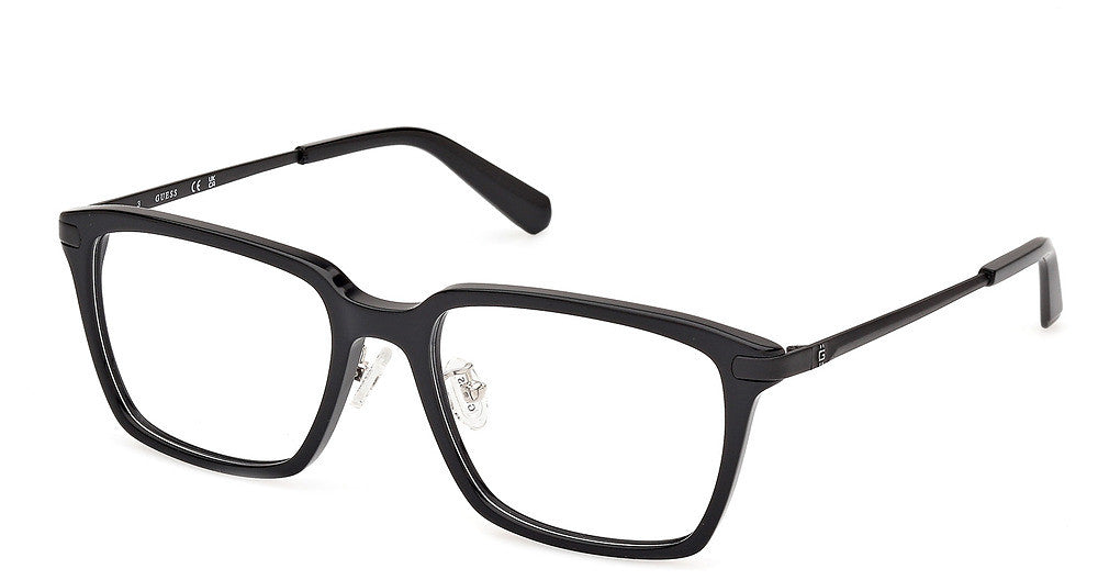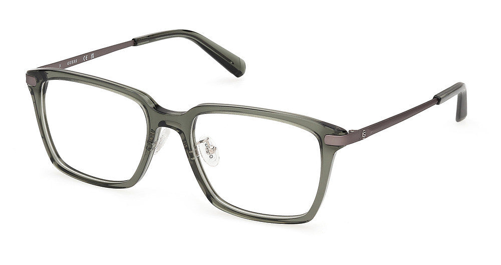 Guess? eyeglasses GU50206-D by Marcolin® has a handmade Plastic designer frame.Most brand name designer frames come with an authentic case. This frame is beautifully crafted for male. This specially designed eyeglass frame shape is a Rectangle and features a Full Rim construction. The bridge is universal, which should allow a comfortable fit on a person with a shallow bridge on their nose. The temples are skull designed, therefore, they wrap over your ears.
