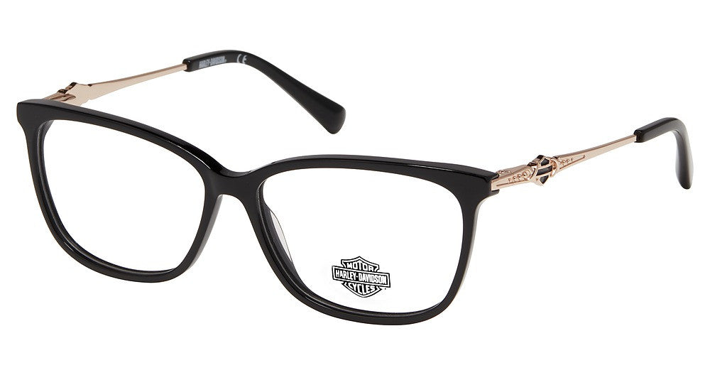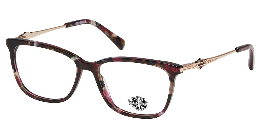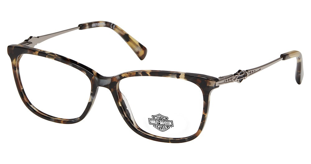Harley-Davidson eyeglasses HD0564 by Marcolin® has a handmade Plastic designer frame.Most brand name designer frames come with an authentic case. This frame is beautifully crafted for female. This specially designed eyeglass frame shape is a Rectangle and features a Full Rim construction. The bridge is universal, which should allow a comfortable fit on a person with a shallow bridge on their nose. The temples are skull designed, therefore, they wrap over your ears.