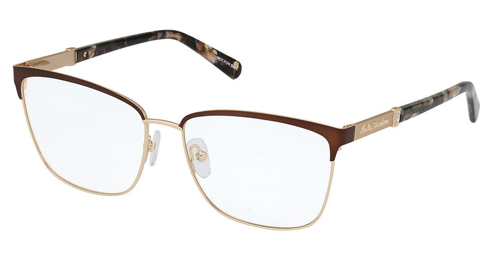 Harley-Davidson eyeglasses HD50076 by Marcolin® has a handmade Metal designer frame.Most brand name designer frames come with an authentic case. This frame is beautifully crafted for female. This specially designed eyeglass frame shape is a Square and features a Full Rim construction. The bridge is universal, which should allow a comfortable fit on a person with a shallow bridge on their nose. The temples are skull designed, therefore, they wrap over your ears.