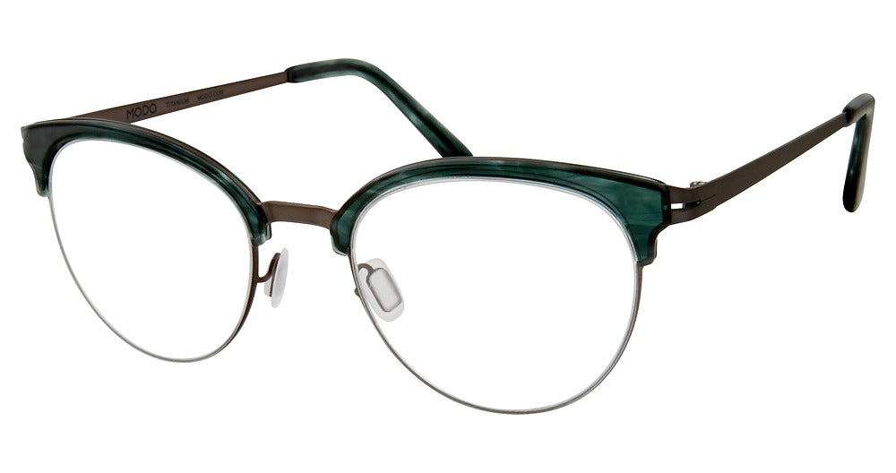 Modo eyeglasses 4518 by Modo Eyewear has a handmade Plastic designer frame.Most brand name designer frames come with an authentic case. This frame is beautifully crafted for unisex. This specially designed eyeglass frame shape is a Modified Round and features a Semi-Rimless construction. The bridge is universal, which should allow a comfortable fit on a person with a shallow bridge on their nose. The temples are skull designed, therefore, they wrap over your ears.