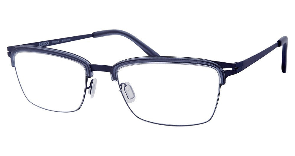 Modo eyeglasses 4522 by Modo Eyewear has a handmade Plastic designer frame.Most brand name designer frames come with an authentic case. This frame is beautifully crafted for male. This specially designed eyeglass frame shape is a Rectangle and features a Half Rim construction. The bridge is universal, which should allow a comfortable fit on a person with a shallow bridge on their nose. The temples are skull designed, therefore, they wrap over your ears.