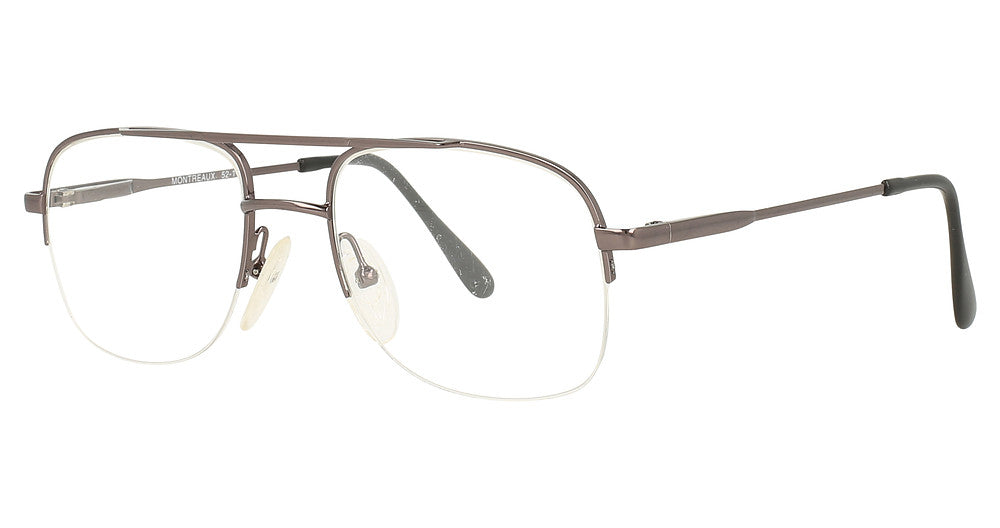Montreaux Eyewear eyeglasses Royale by Rochester Optical has a handmade Metal designer frame.Most brand name designer frames come with an authentic case. This frame is beautifully crafted for male. This specially designed eyeglass frame shape is a Navigator and features a Semi-Rimless construction. The bridge is universal, which should allow a comfortable fit on a person with a shallow bridge on their nose. The temples are skull designed, therefore, they wrap over your ears.