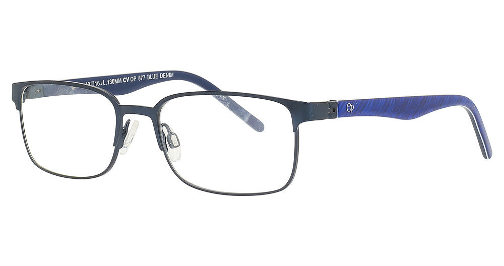 Op-Ocean Pacific eyeglasses 877 by ClearVision has a handmade Metal designer frame.Most brand name designer frames come with an authentic case. This frame is beautifully crafted for male. This specially designed eyeglass frame shape is a Rectangle and features a Full Rim construction. The bridge is universal, which should allow a comfortable fit on a person with a shallow bridge on their nose. The temples are skull designed, therefore, they wrap over your ears.