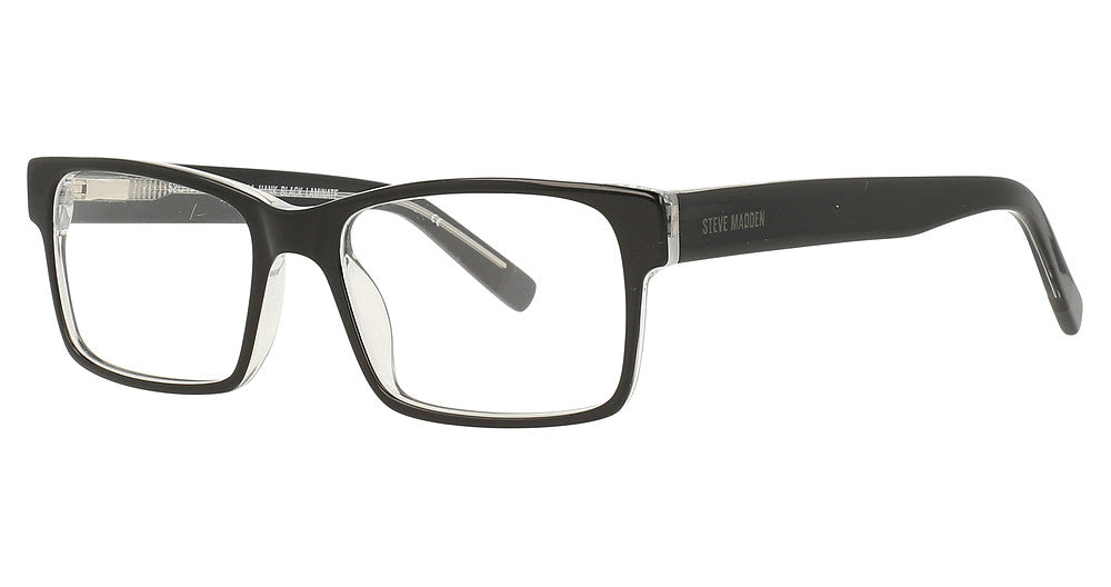 Steve Madden eyeglasses Hank by ClearVision has a handmade Plastic designer frame.Most brand name designer frames come with an authentic case. This frame is beautifully crafted for male. This specially designed eyeglass frame shape is a Rectangle and features a Full Rim construction. The bridge is universal, which should allow a comfortable fit on a person with a shallow bridge on their nose. The temples are skull designed, therefore, they wrap over your ears.
