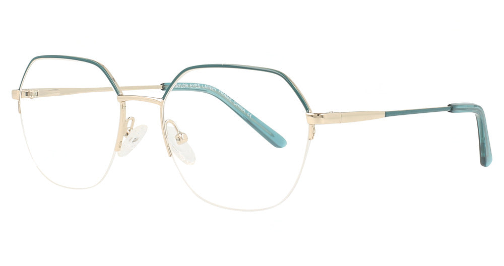 TAYLOR EYES eyeglasses LAINEY by Visual Eyes Eyewear has a handmade Metal designer frame.Most brand name designer frames come with an authentic case. This frame is beautifully crafted for male. This specially designed eyeglass frame shape is a Modified Oval and features a Half Rim construction. The bridge is universal, which should allow a comfortable fit on a person with a shallow bridge on their nose. The temples are skull designed, therefore, they wrap over your ears.