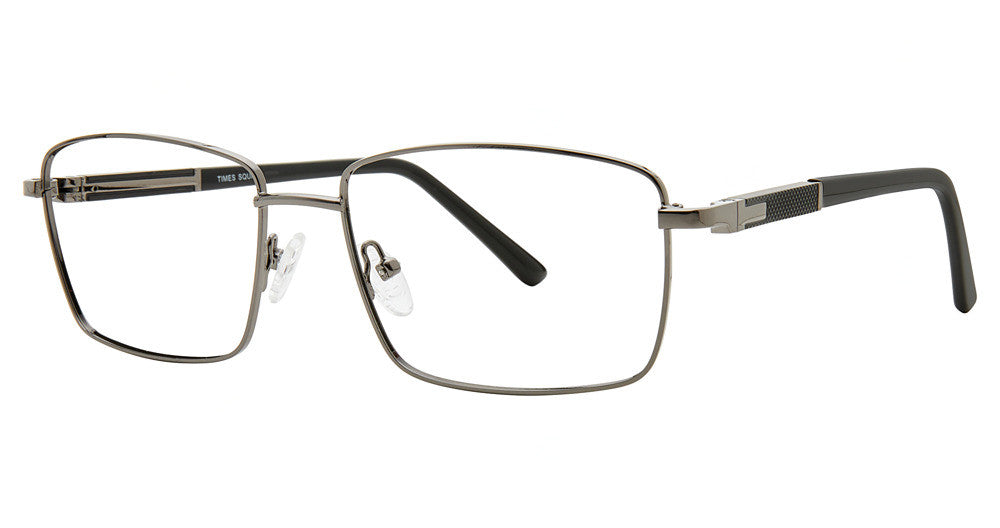Times Square eyeglasses CHAMP by Smilen Eyewear has a handmade Metal METAL designer frame.Most brand name designer frames come with an authentic case. This frame is beautifully crafted for male. This specially designed eyeglass frame shape is a Rectangle and features a Full Rim construction. The bridge is universal, which should allow a comfortable fit on a person with a shallow bridge on their nose. The temples are straight designed, therefore, they wrap over your ears.