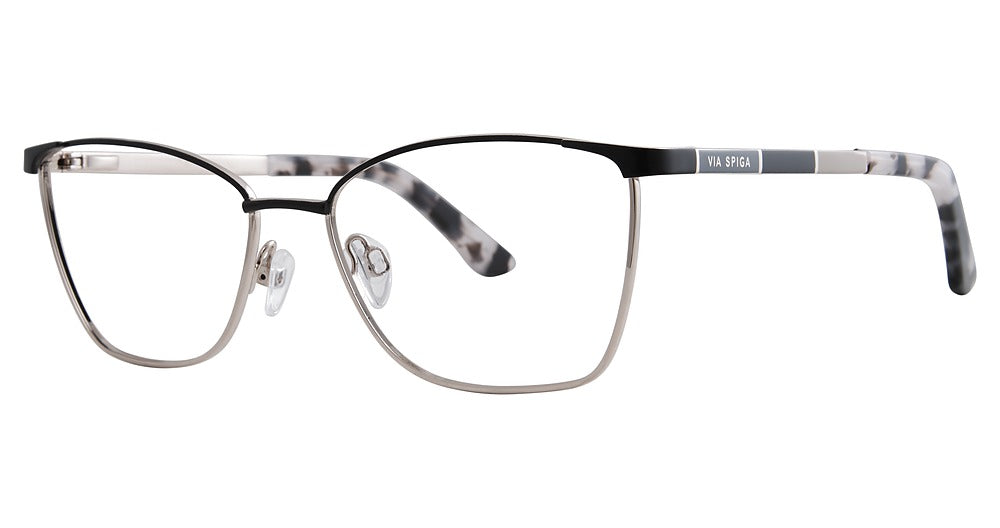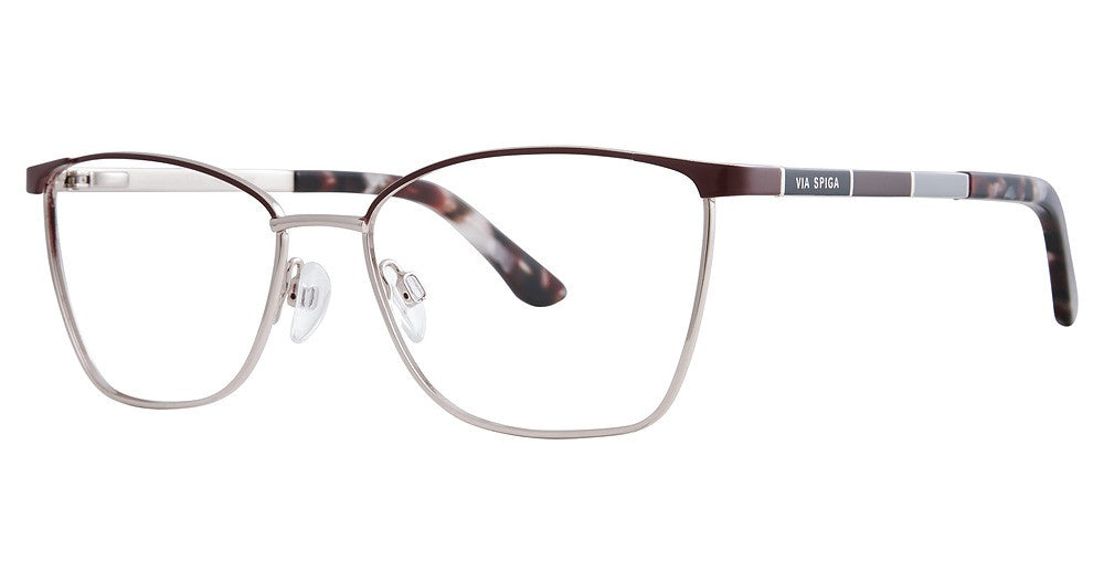 Via Spiga eyeglasses Via Spiga Franca by Zyloware has a handmade Metal designer frame.Most brand name designer frames come with an authentic case. This frame is beautifully crafted for female. This specially designed eyeglass frame shape is a Square and features a Full Rim construction. The bridge is universal, which should allow a comfortable fit on a person with a shallow bridge on their nose. The temples are skull designed, therefore, they wrap over your ears.