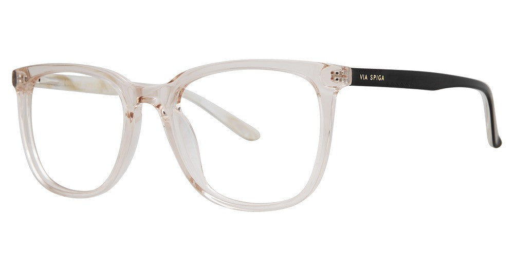 Via Spiga eyeglasses Via Spiga Livia by Zyloware has a handmade Plastic designer frame.Most brand name designer frames come with an authentic case. This frame is beautifully crafted for female. This specially designed eyeglass frame shape is a Square and features a Full Rim construction. The bridge is universal, which should allow a comfortable fit on a person with a shallow bridge on their nose. The temples are skull designed, therefore, they wrap over your ears.