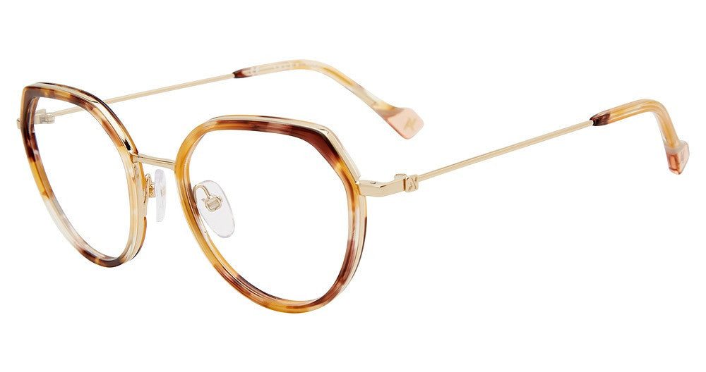 Yalea eyeglasses VYA038 by De Rigo Rem has a handmade Metal designer frame.Most brand name designer frames come with an authentic case. This frame is beautifully crafted for female. This specially designed eyeglass frame shape is a Round and features a Full Rim construction. The bridge is universal, which should allow a comfortable fit on a person with a shallow bridge on their nose. The temples are straight designed, therefore, they wrap over your ears.